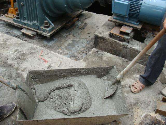 2)將1公斤快硬水泥放入鍋內(nèi),加入0.30-0.36公斤水,迅速拌成漿體。冬天施工宜用溫水,夏天施工宜用冷卻水,拌和水量過多或太少均影響施工質(zhì)量。水量過多漿體稀,強(qiáng)度下降;水量過少漿體干硬不密實(shí)。條件許可時(shí)可先試拌。
