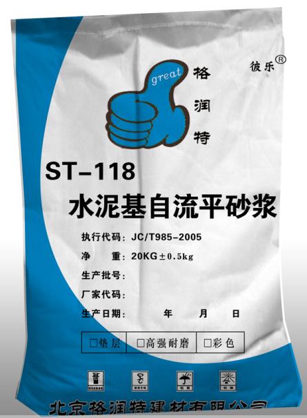外觀: 自由粉體狀 色澤: 灰色、綠色、紅色或其它顏色等 粘結料: 普硅水泥、高鋁水泥、硅酸鹽水泥等 附加劑: 多種表面活性助劑及分散乳膠粉 水料比: 5升/25kg 室內民用自流平 干基密度: 1.5公斤/升