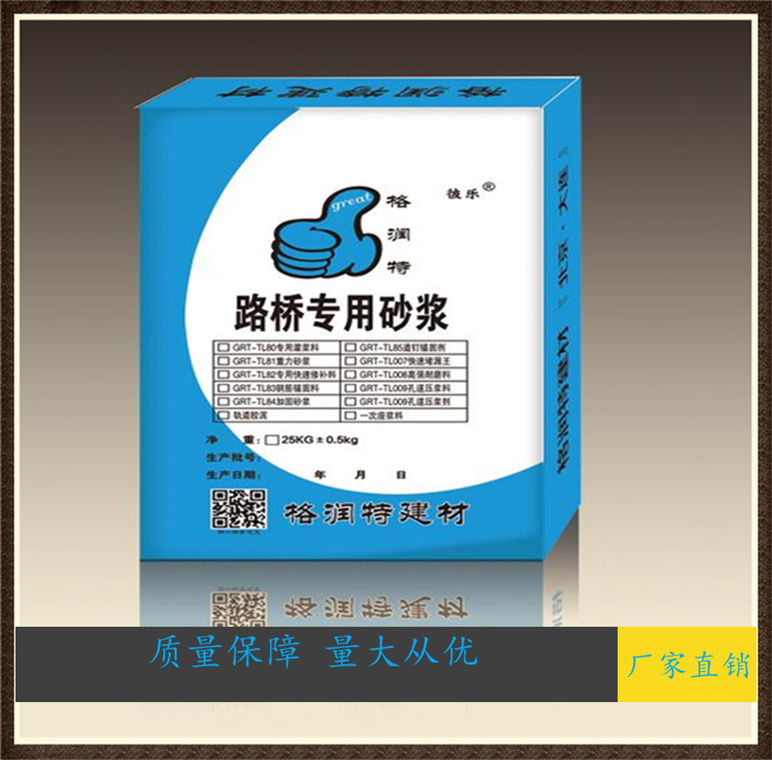 路橋?qū)S眯扪a料是一種高性價比的高強度快干地面修補產(chǎn)品,本產(chǎn)品既具有高分子材料的粘接性,又具有無機材料耐久性的新型混凝土修補砂漿;抗壓強度高,固化迅速,粘接性能好;有很好的保水性能和抗裂性、高耐堿性、耐紫外線;操作簡便,可潮濕基層施工,健康環(huán)保。使施工步驟變得簡單、方便,耐久性與混凝土同步,縮短工期,可確保經(jīng)濟性。